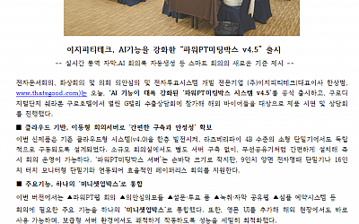 20년간 페이퍼리스미팅시스템, 화상회의, 전자명패, 의안심의 및 전자투표시스템을 개발해 온 (주)이지피티테크(www.thatsgood.com 대표이사 한상범)는 지난 11월 28일..